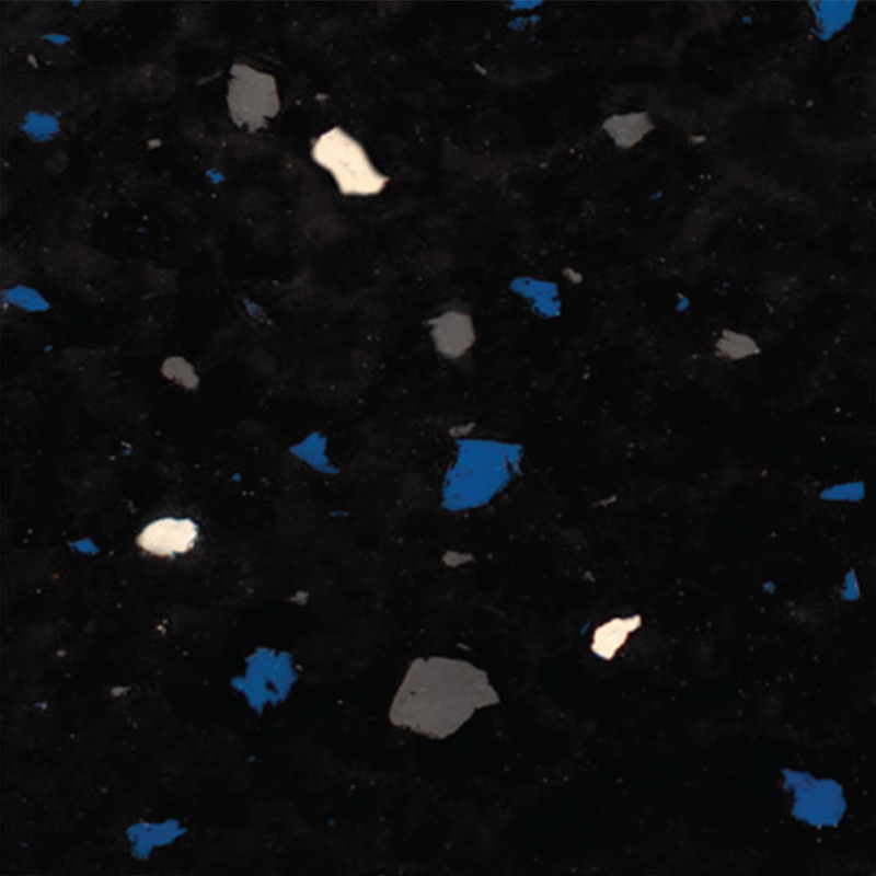 It features a smooth, lightly hammered surface texture, accented with multicolored EPDM chips evenly blended throughout. This ensures vibrant color and striking visual depth.